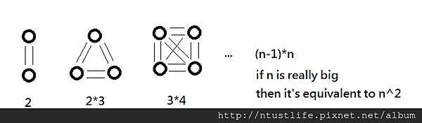 n個人 (n-1)*n條 約等於 n^2 (n平方)