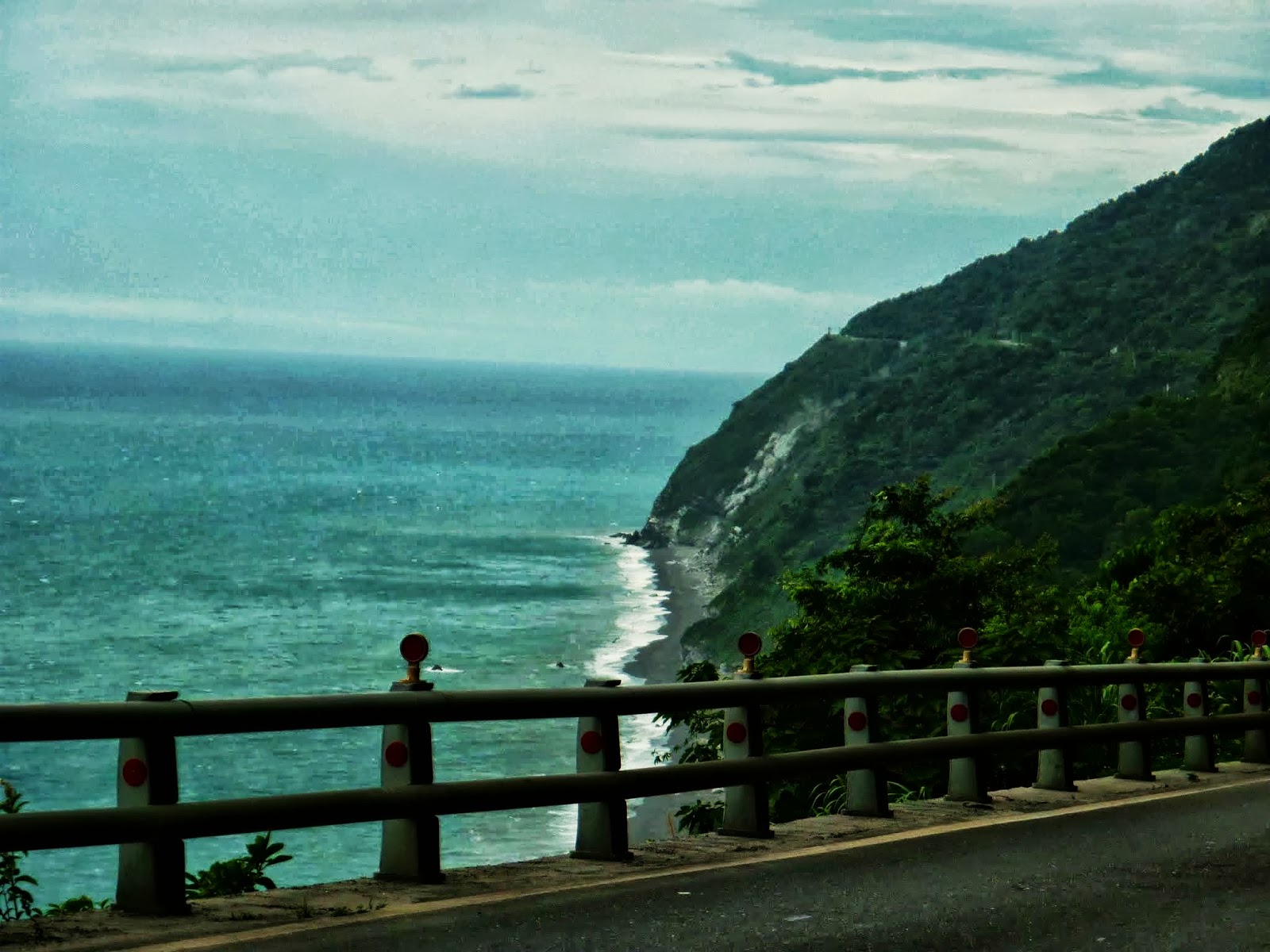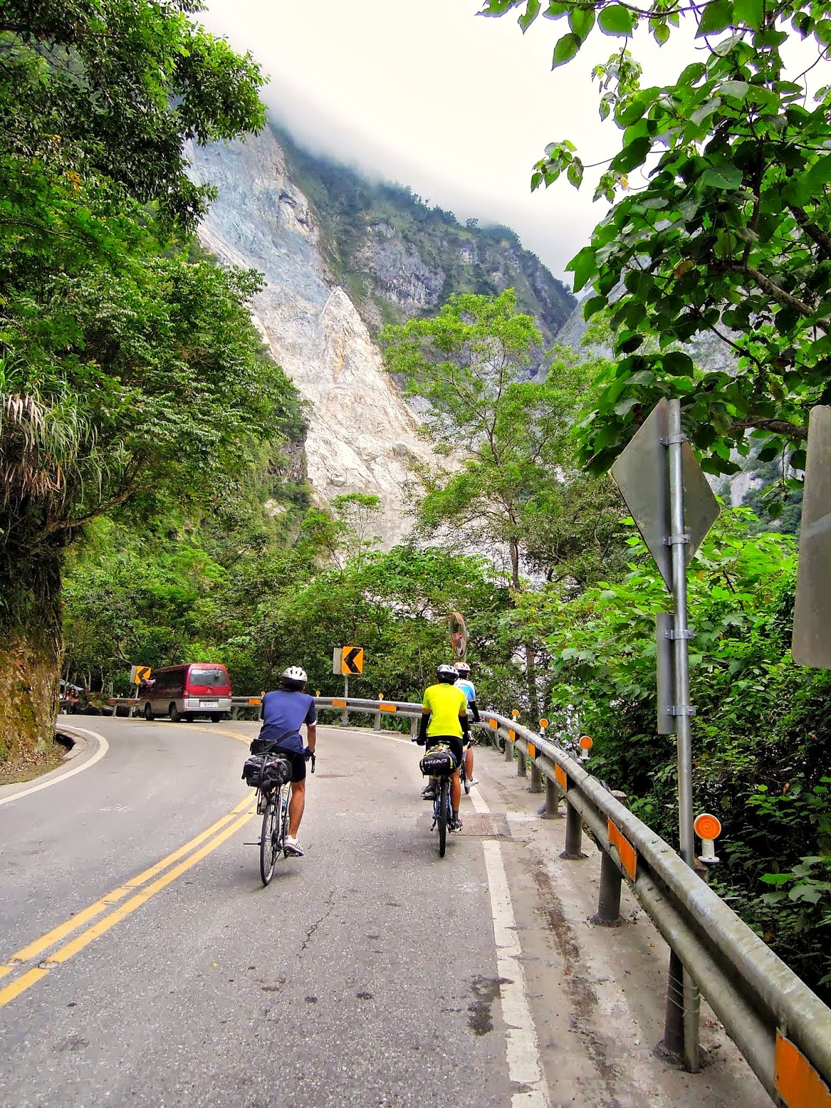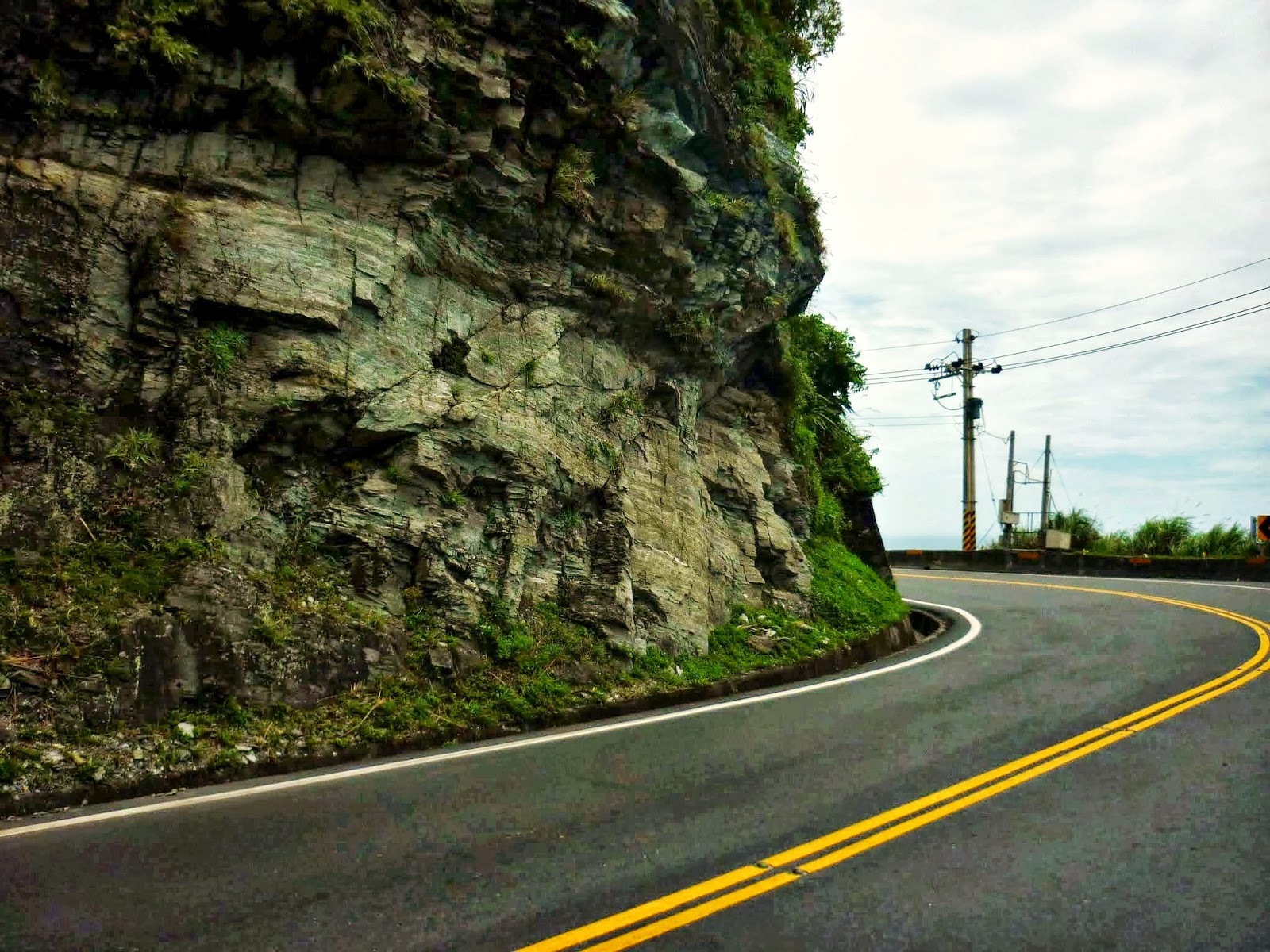 而且因為是順時針環島的關係, 我們是貼著山壁騎車的