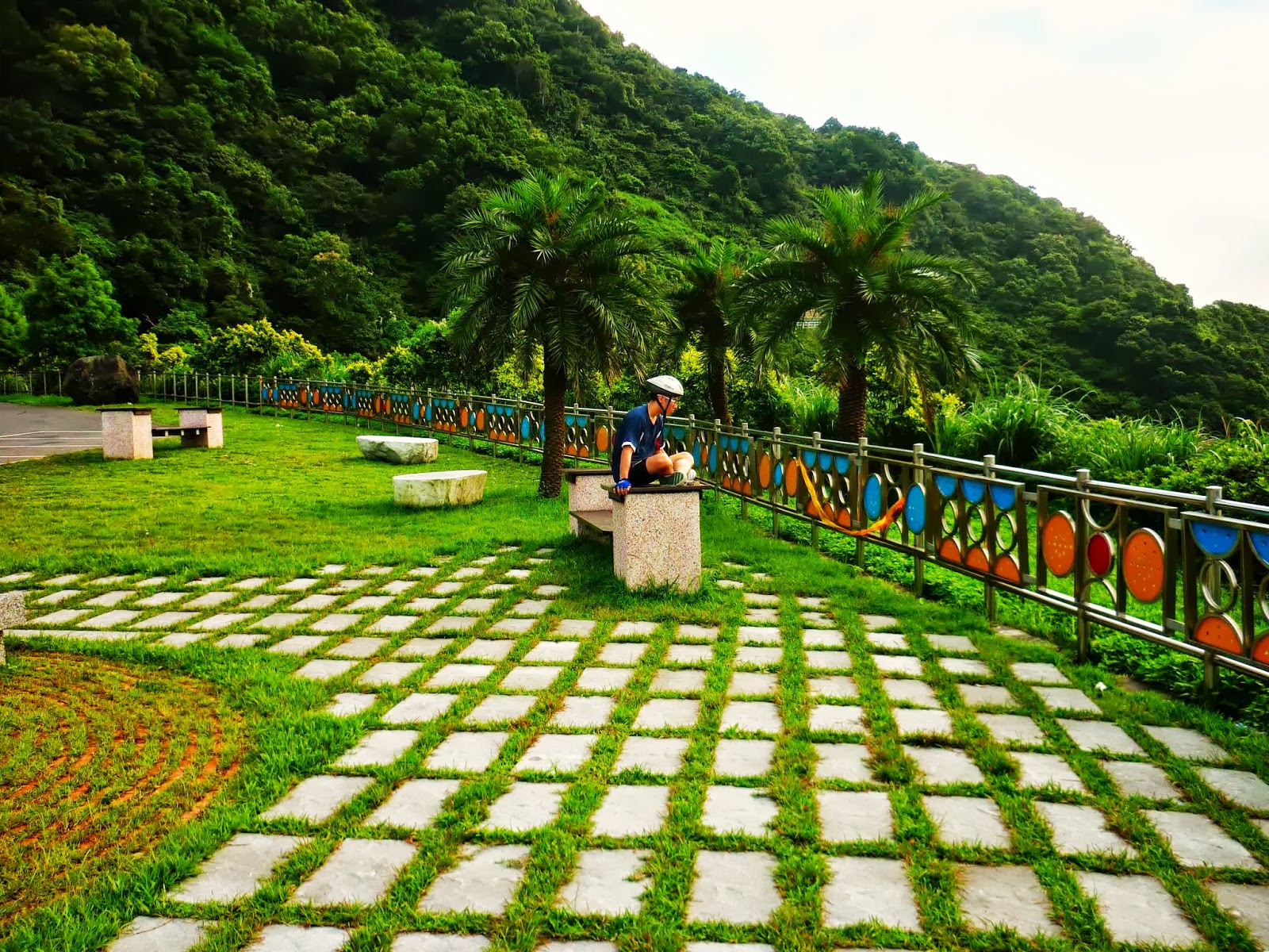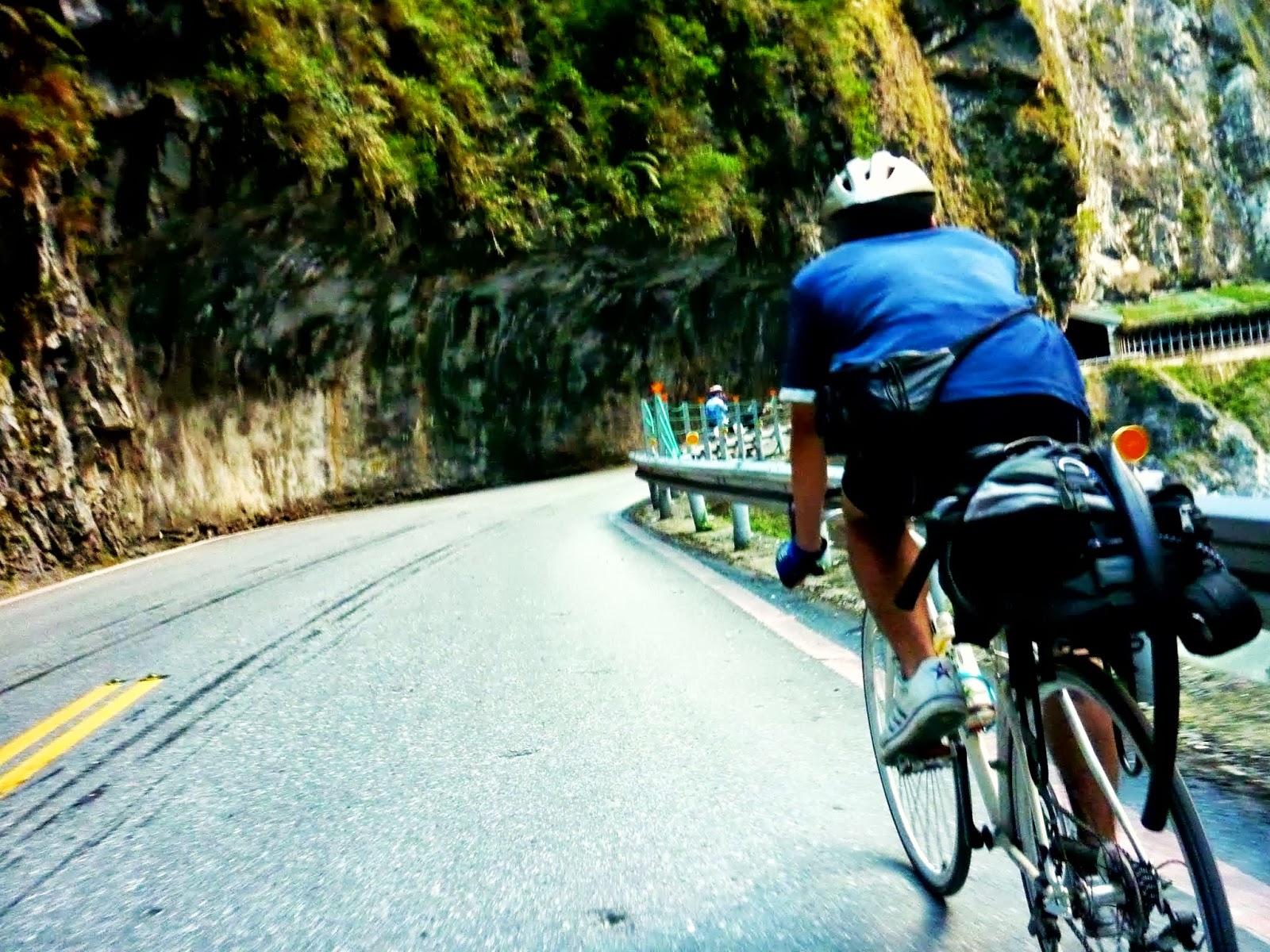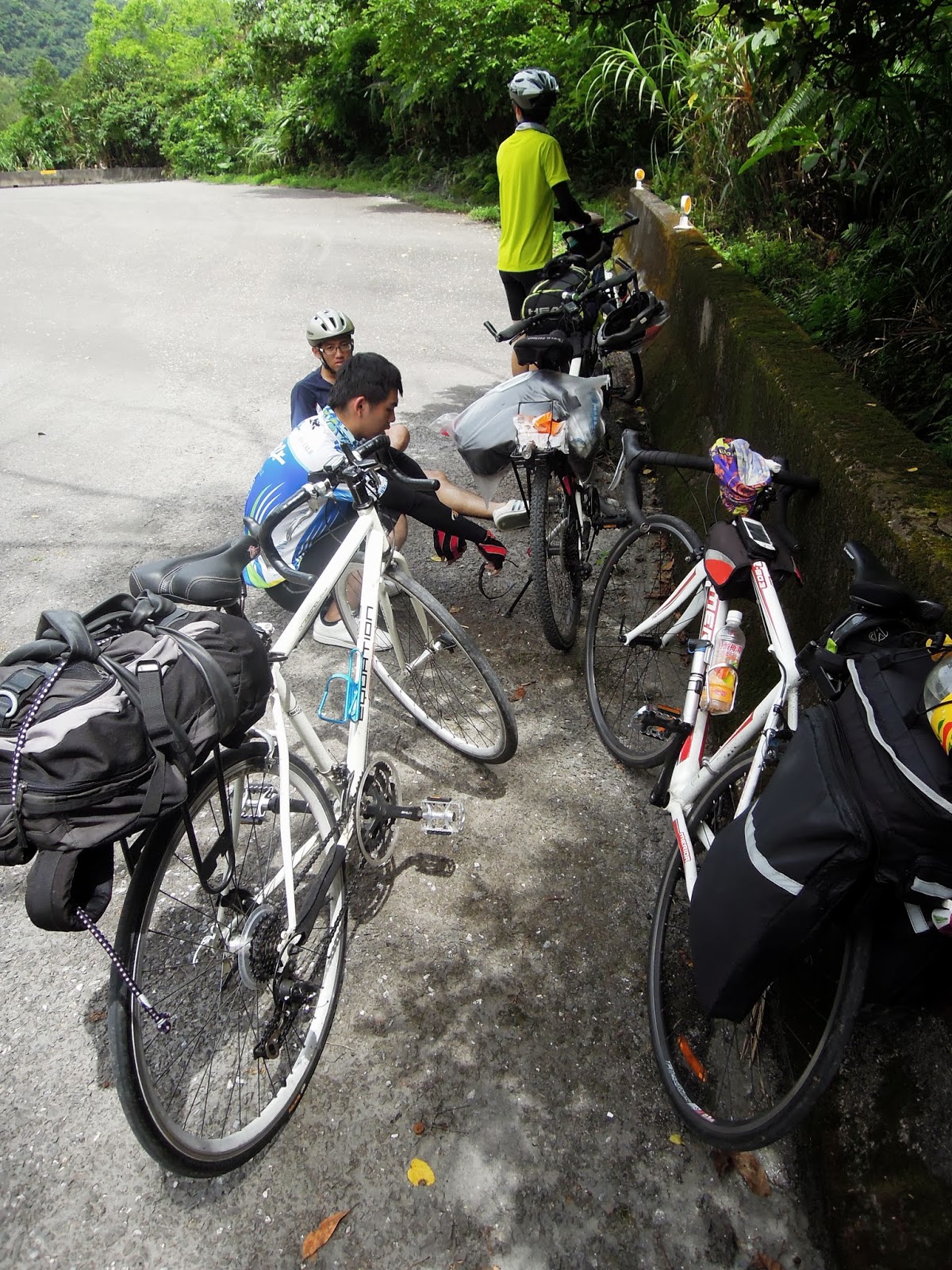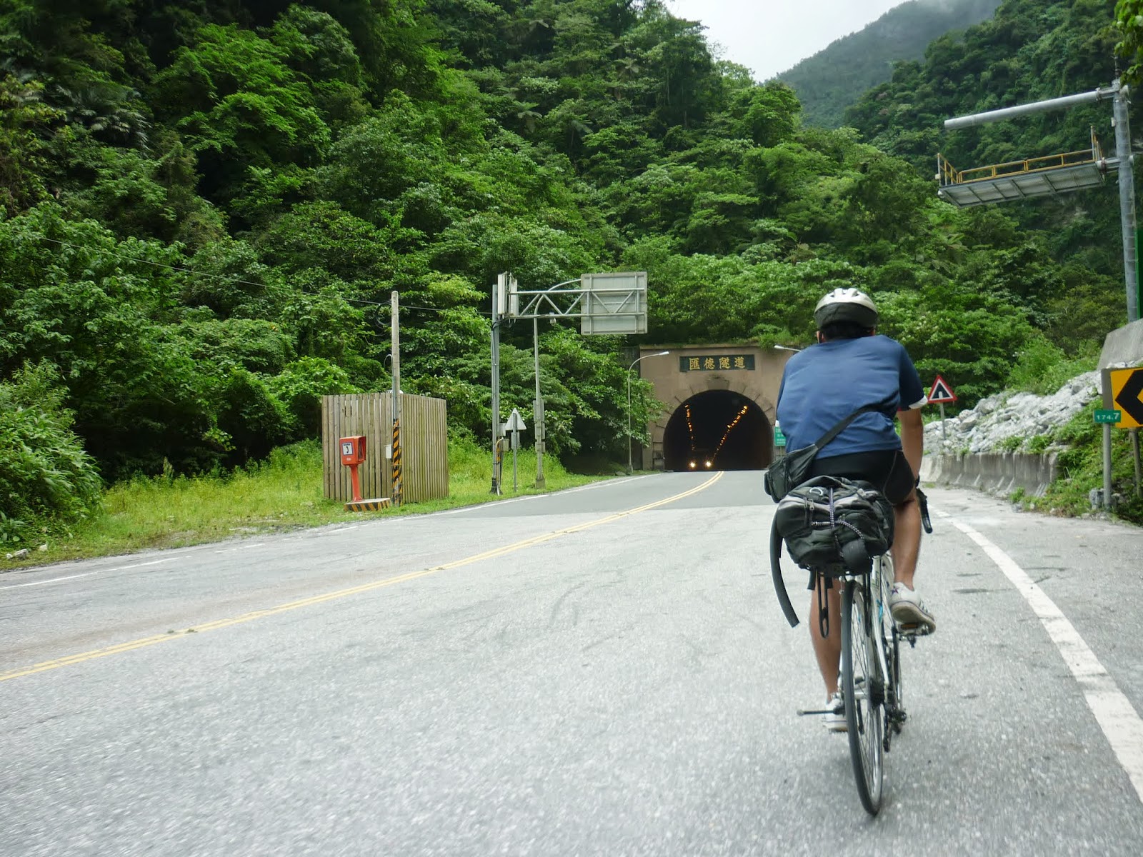 而且因為是順時針環島的關係, 我們是貼著山壁騎車的