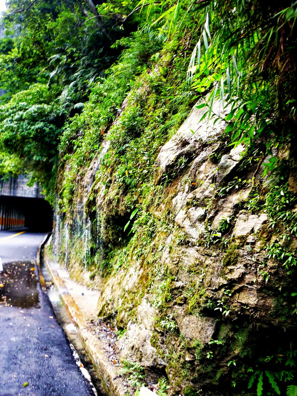 可是山壁跟道路間還有裸露出的排水溝, 騎下去就嚴重骨折了吧